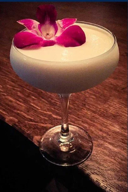 Blend all ingredients until smooth, about 1 minute. Pour into two coupes and garnish with lime and your imagination.